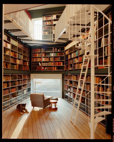 Fotos de ambientes lindos com livros, definitivamente, não me cansam. Então na série de listas impagáveis do Flavorwire, apareceu essa de 20 bonitas bibliotecas pessoais e particulares. Lá, tem a biblioteca de George Lucas e a de Neil Gaiman, por exemplo. As minhas preferidas são sempre as que juntam uma vista prazerosa (de mar, de floresta, de paisagem) e um lugar confortável pra se afundar com um livro, como essa poltrona aí em cima.