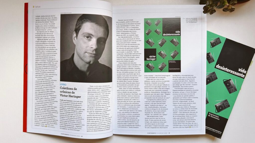 O que parecia um benefício se tornou uma limitação, é preciso esforço pra sair da bolha. E dentro dessa missão, há certos antídotos como o livro Vida Desinteressante – Fragmentos de memórias (Companhia das Letras, 262 páginas), do Victor Heringer.